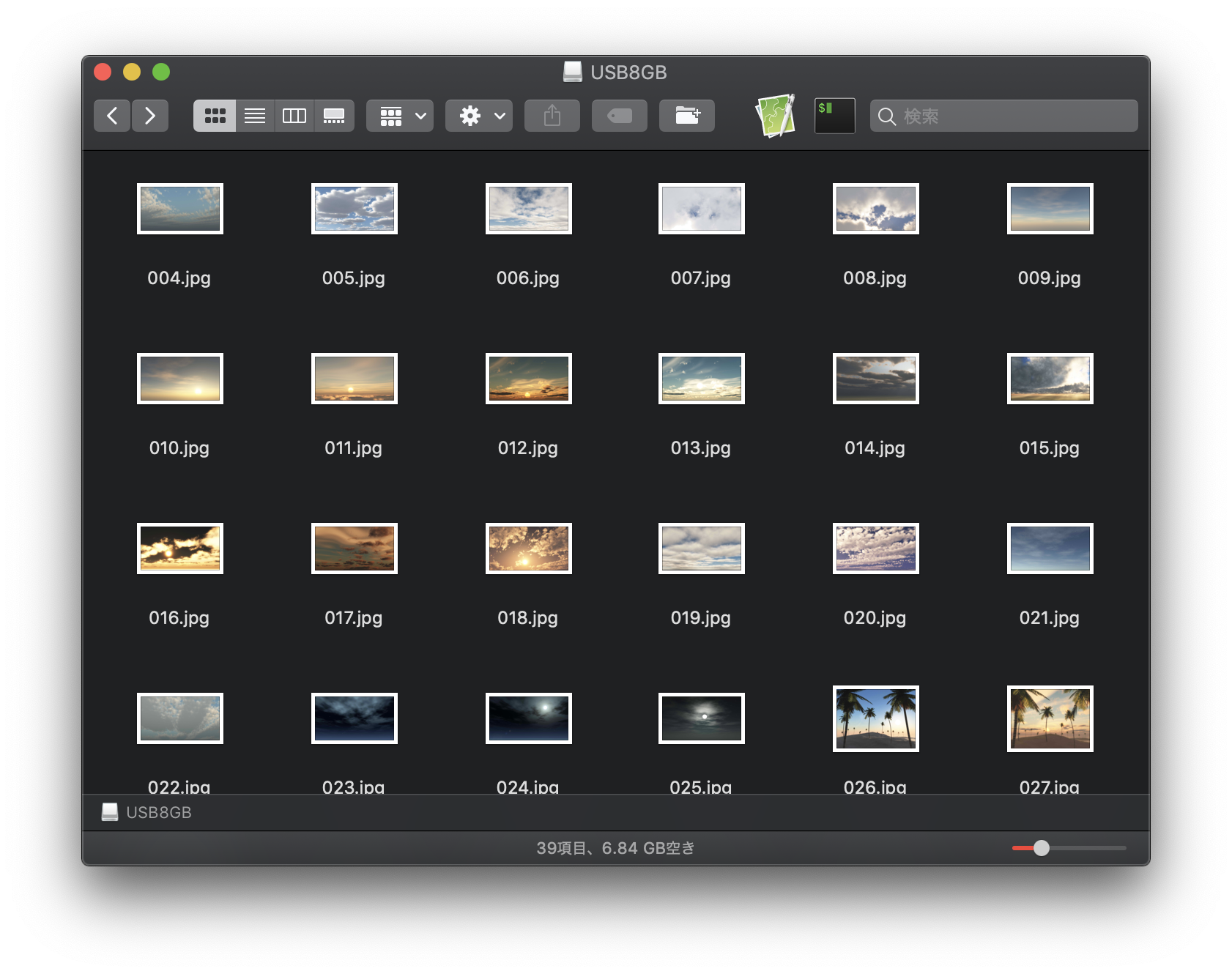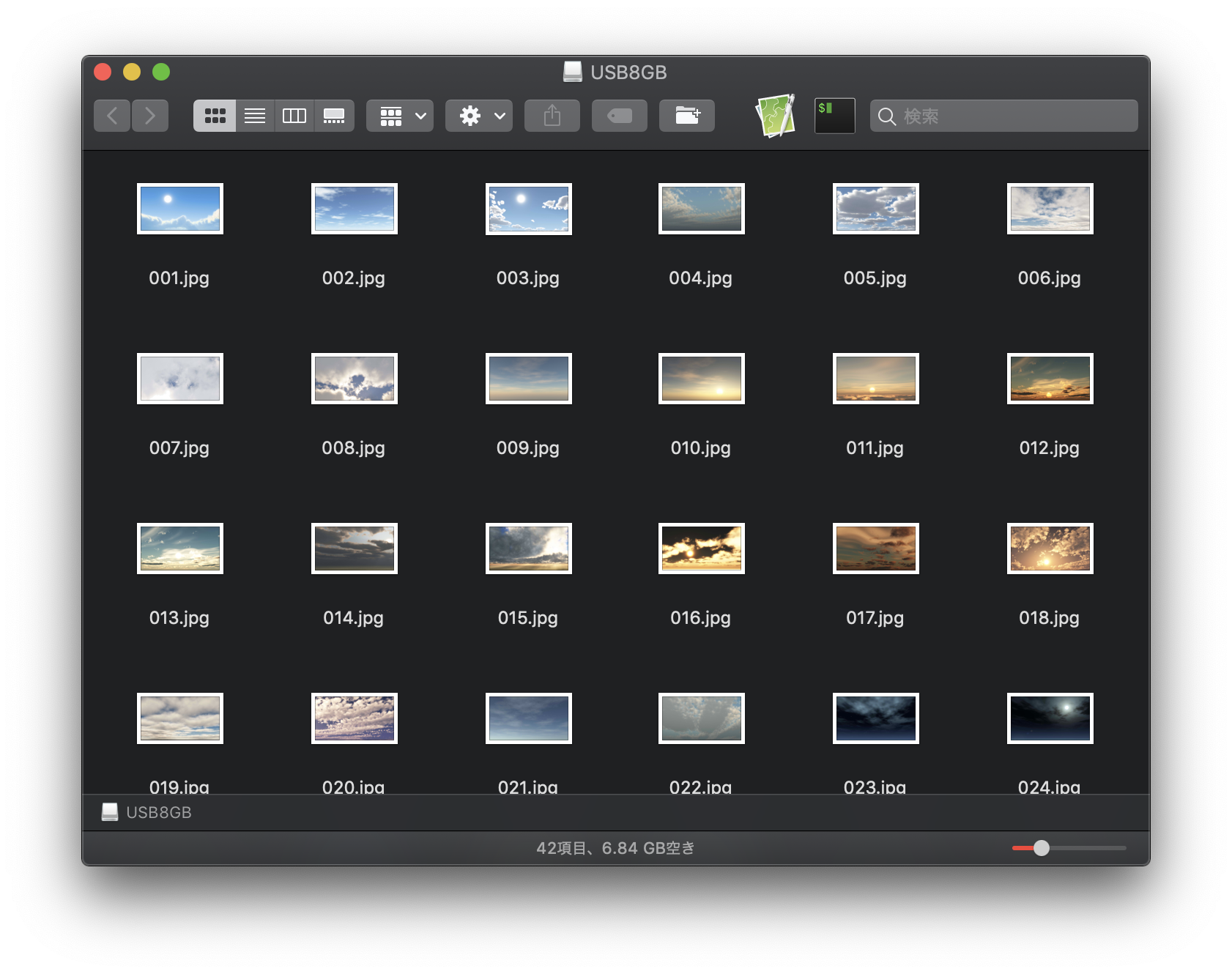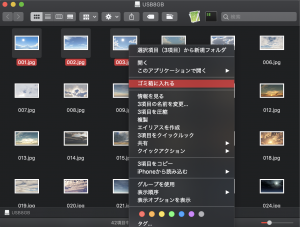 今回、初期条件として「ディスクユーティリティー」で最も安全にフォーマットを実行してから画像ファイルを42個追加してみました。