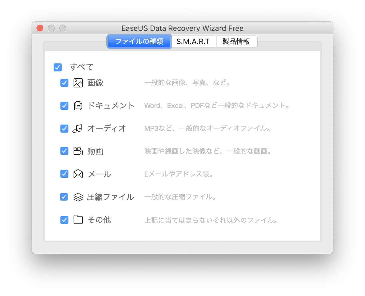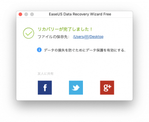 使用するソフトは「EaseUS Data Recovery Wizard」というデータ復元ソフトを使用します。WindowsとMac両方で使用することができ、日本語にも対応しているので非常に便利です。無料版でも2GBまでならしっかりと復元してくれます。