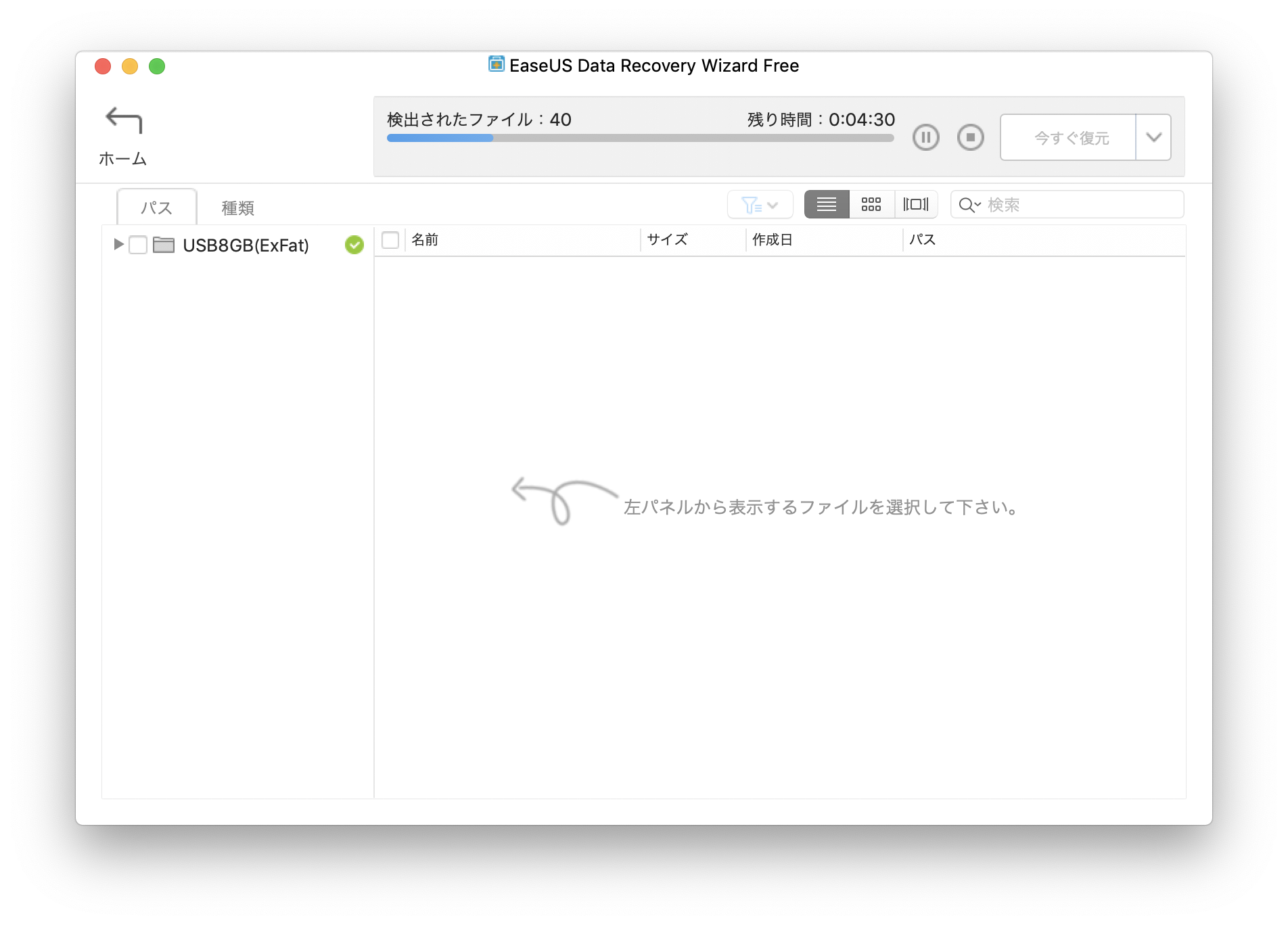このソフトの利点は何よりシンプルなところが挙げられます。他のデータ復旧ソフトにありがちな複雑なUIや設定などがなく、わかりやすく使いやすいUIに仕上がっています。大変好感を持てるポイントです。